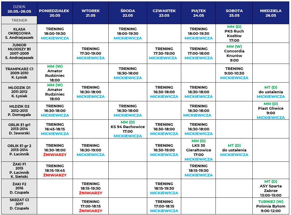 Harmonogram zajęć: 20.05-25.05.2024