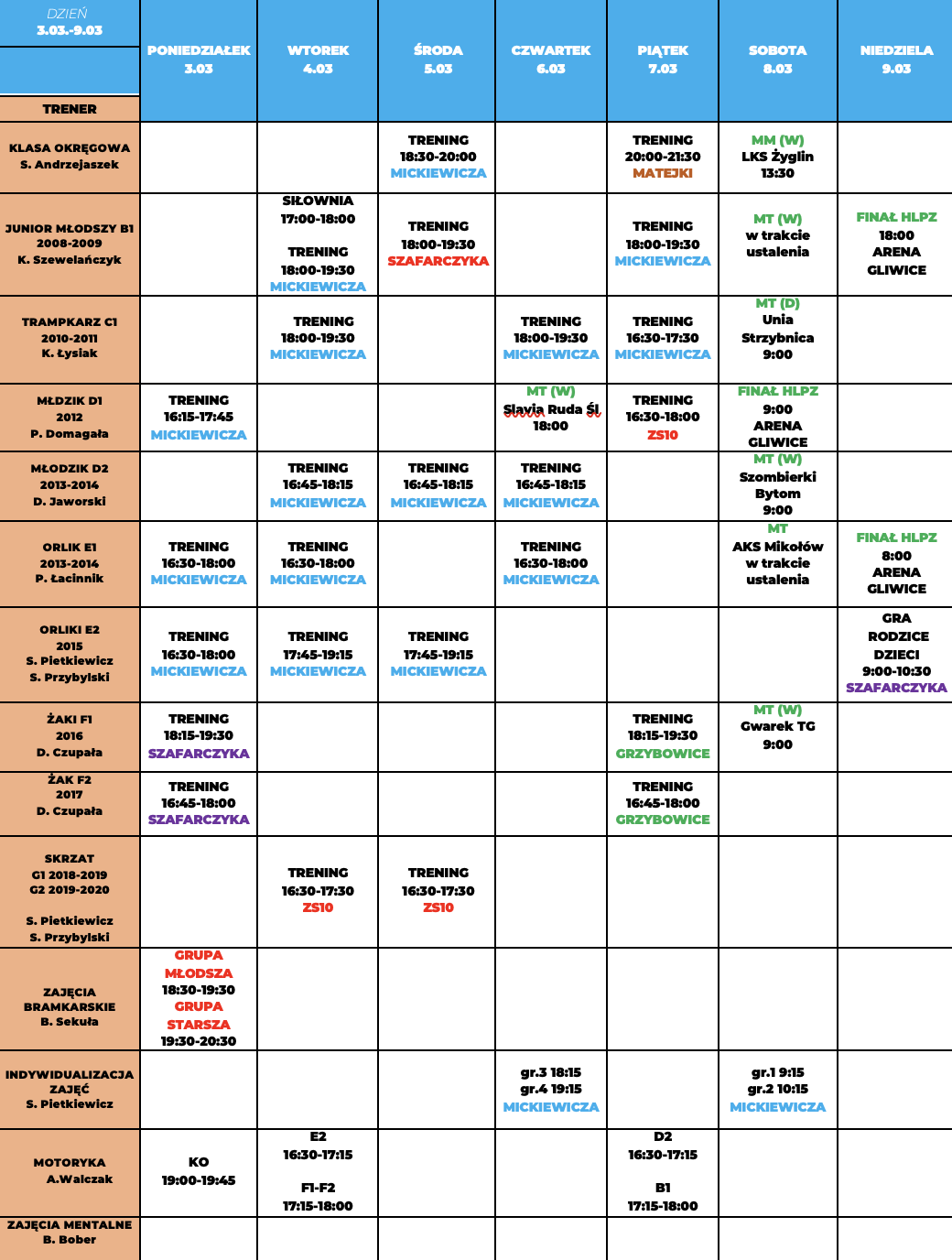 Harmonogram 3.03 – 9.03.2025