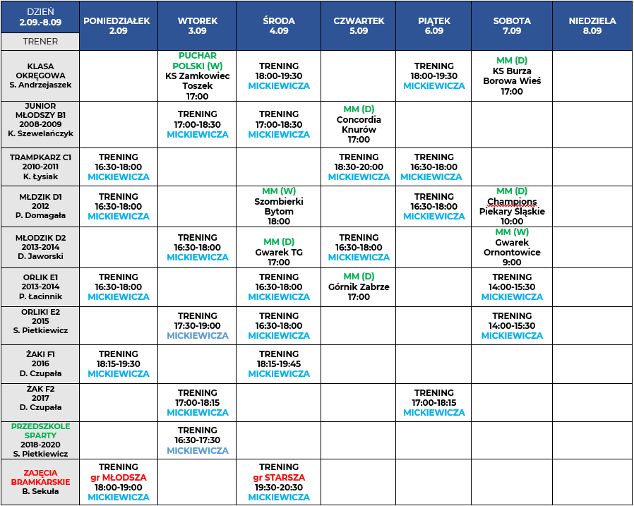 Harmonogram zajęć: 02.09-08.09.2024