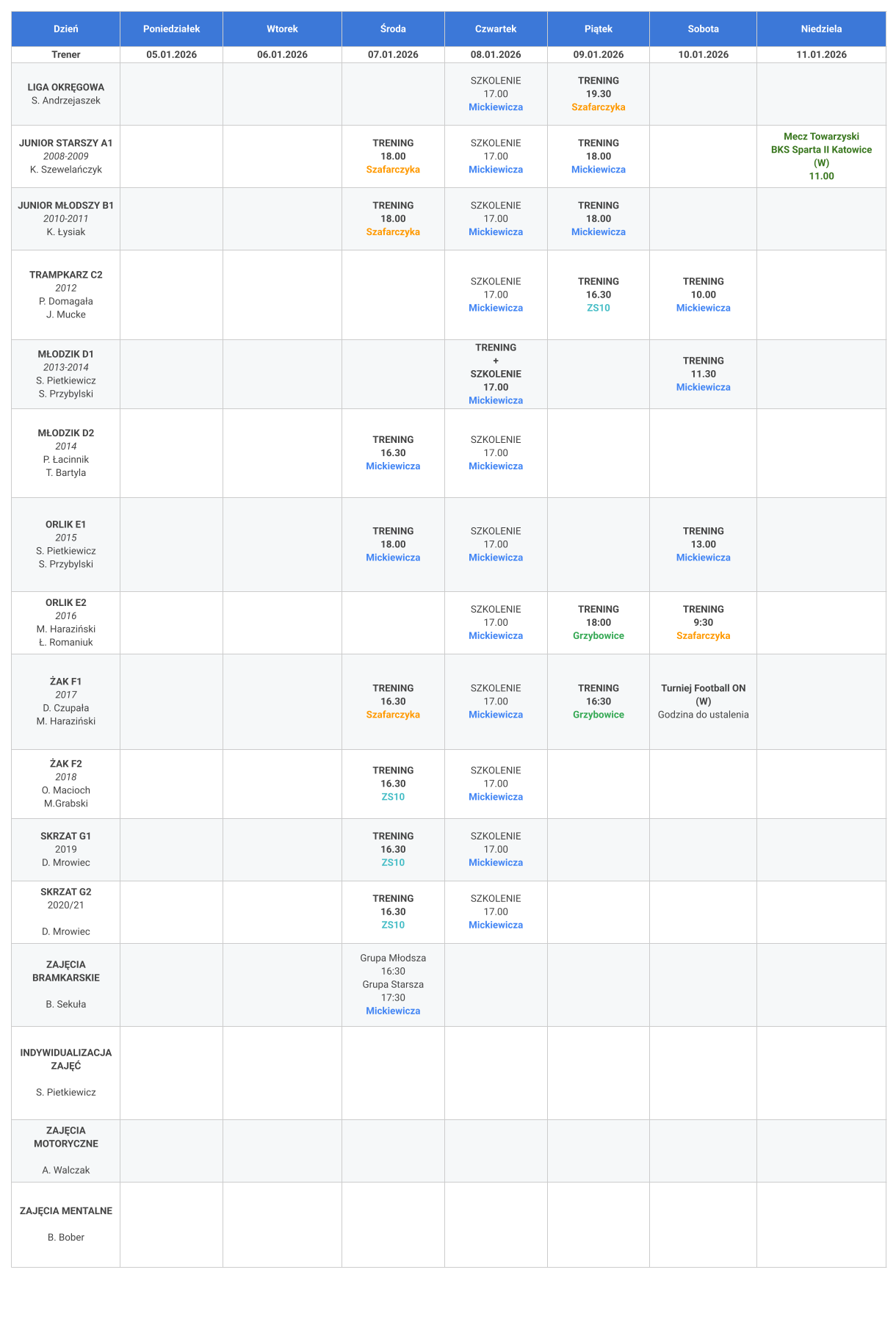 Harmonogram zajęć: 07.01-11.01.2026