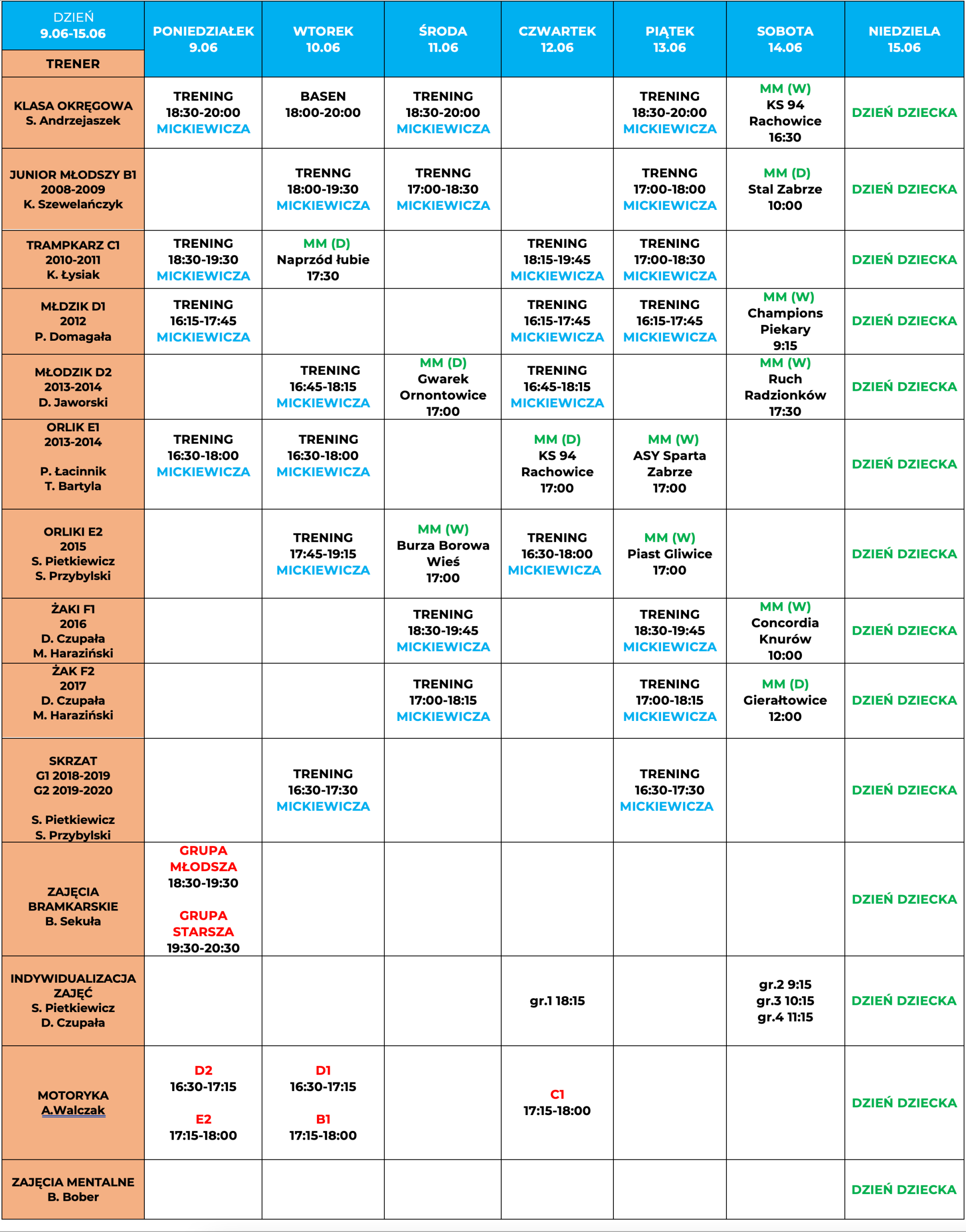 Harmonogram zajęć: 09.06-15.06.2025
