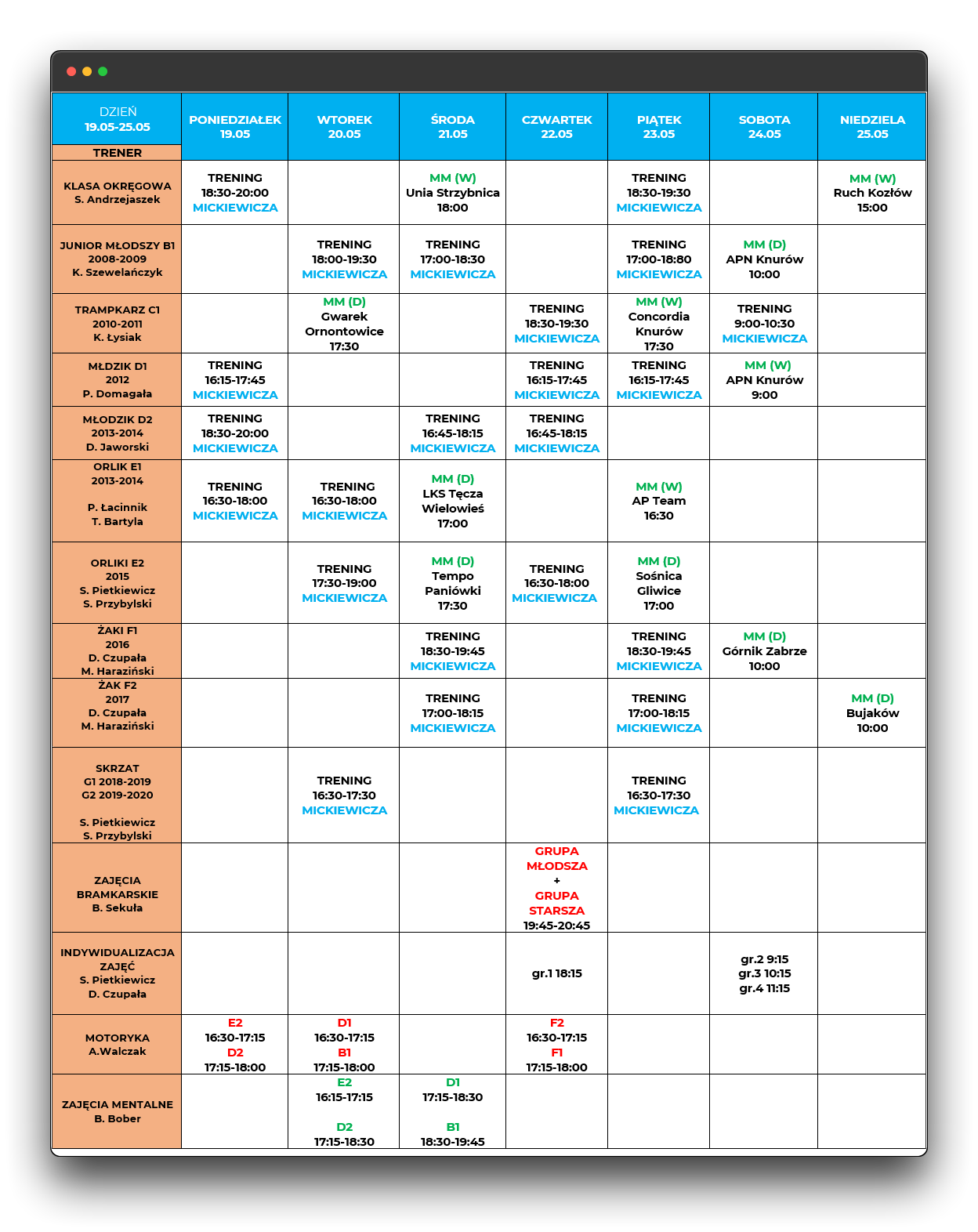 Harmonogram zajęć: 19.05-25.05.2025