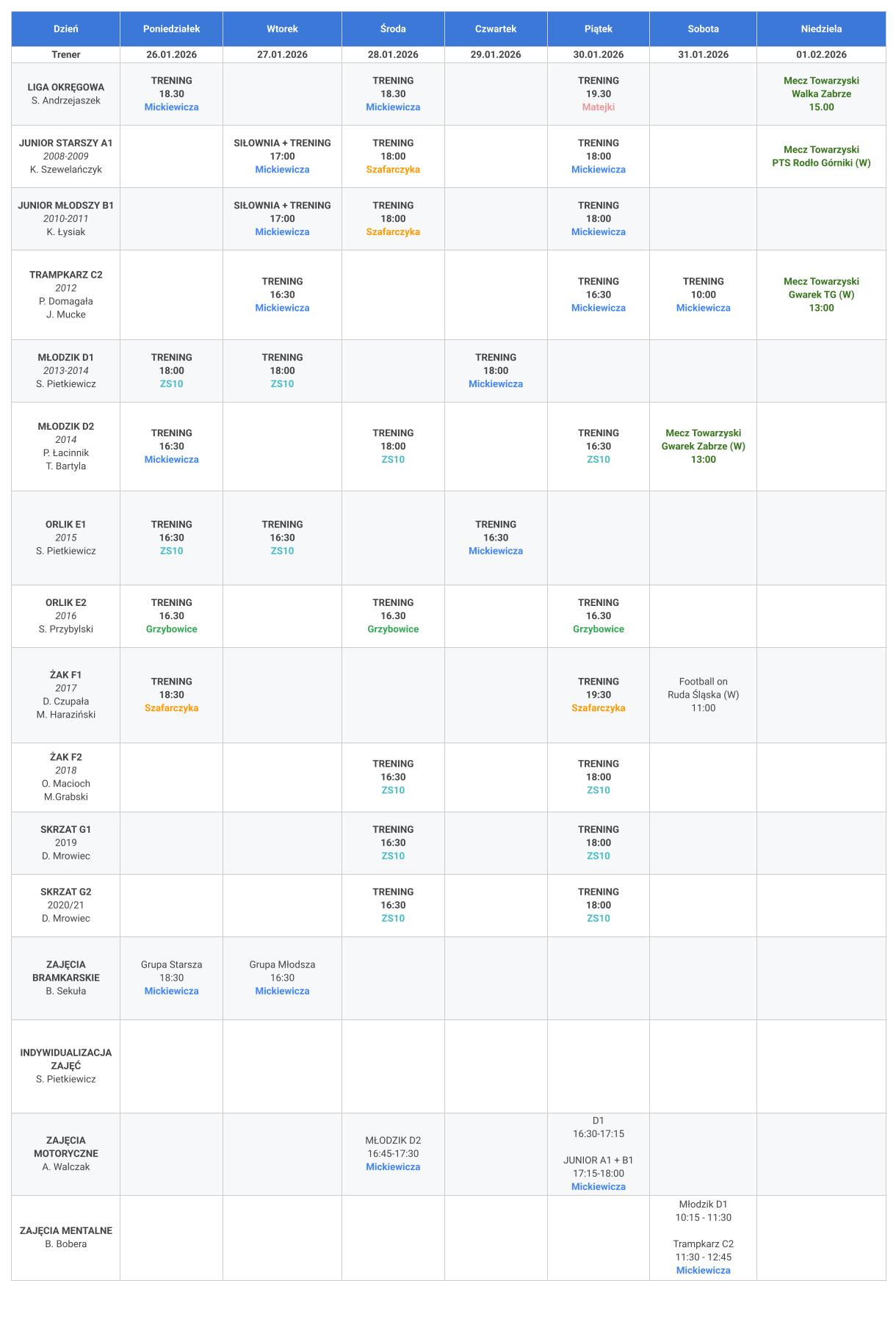 Harmonogram zajęć: 26.01-01.02.2026