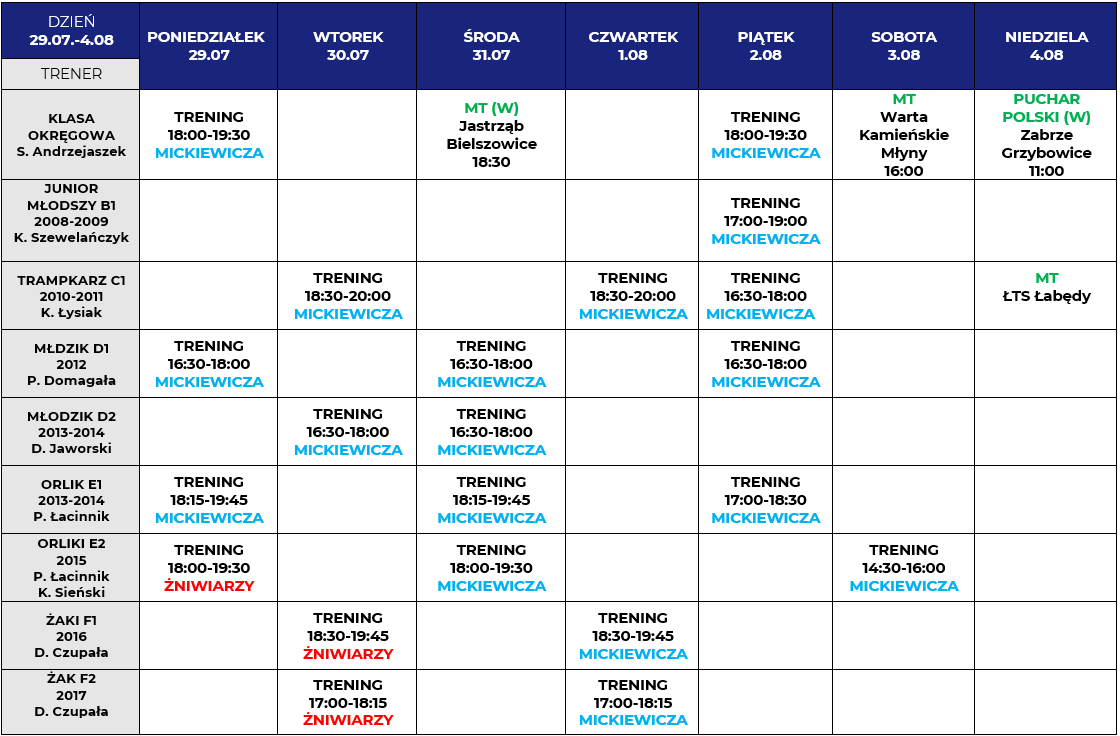 Harmonogram zajęć: 29.07-04.08.2024