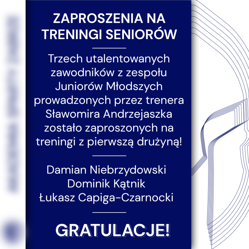 Drużyna seniorska naszego klubu rozpoczyna proces wprowadzania trzech utalentowanych młodych piłkarzy do treningów z pierwszą drużyną. Łukasz Capiga, Damian Niebrzydowski i Dominik Kątnik, to zawodnicy, którzy wzbogacą skład o świeże umiejętności i dodatkowy entuzjazm.