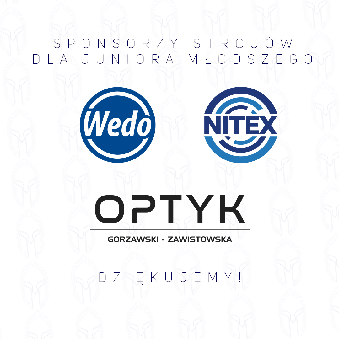 Serdecznie dziękujemy firmom Wedo Poland, Nitex oraz Optyk S.C. Gorzawski – Zawistowska Zabrze za ufundowanie strojów dla zespołu Juniorów Młodszych prowadzonego przez trenera Sławomira Andrzejaszka.
